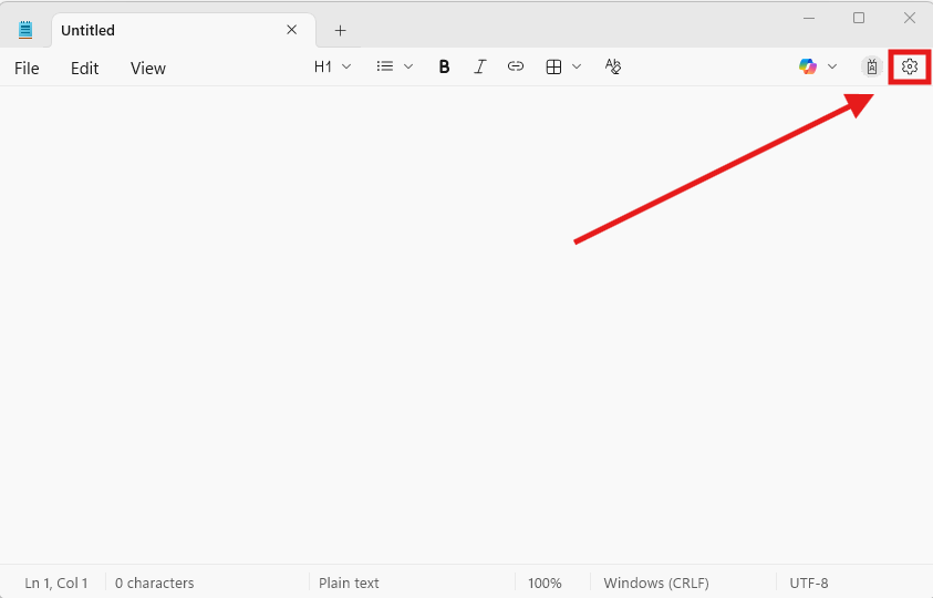 Step 1: Open Notepad RCE and click on the Settings option on the top right corner.